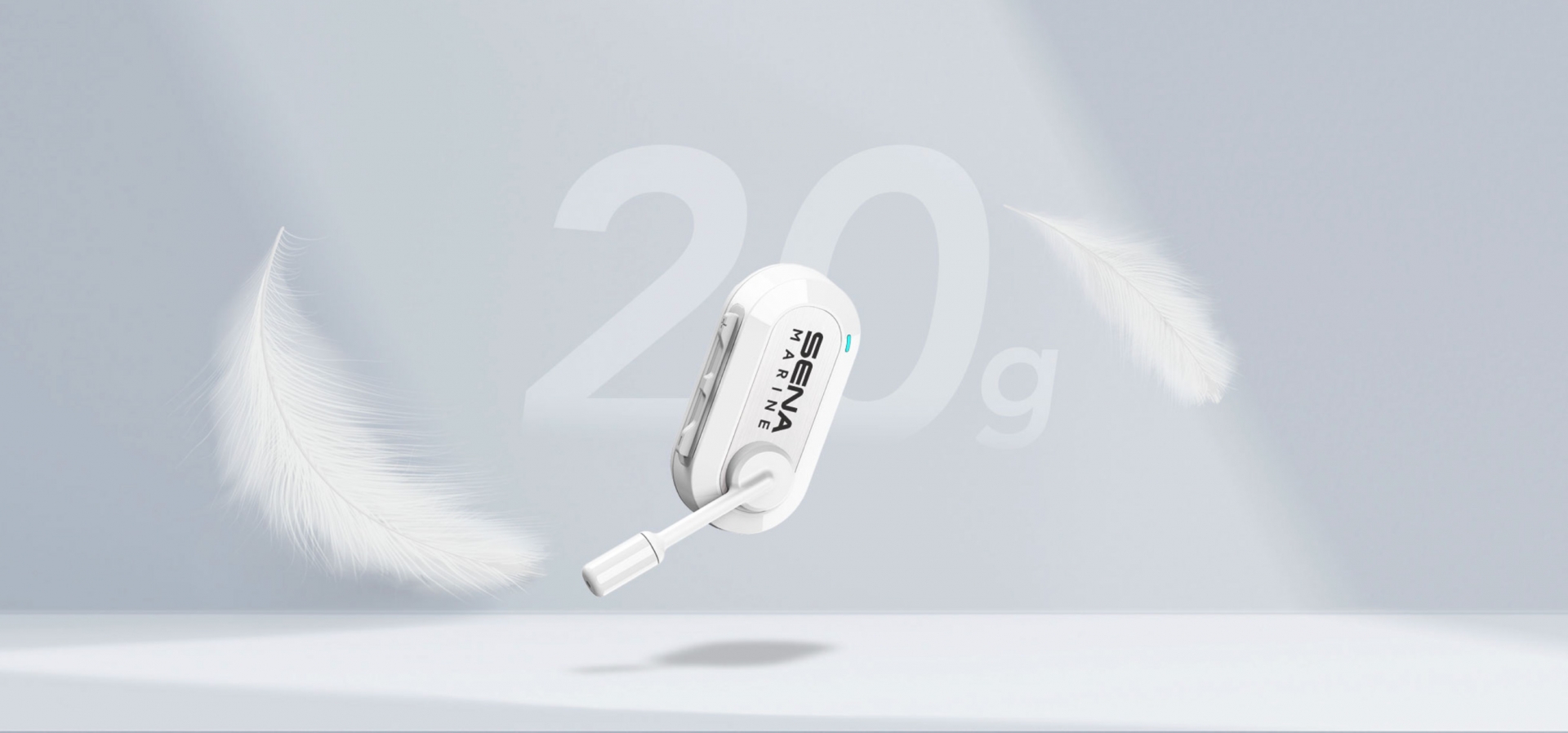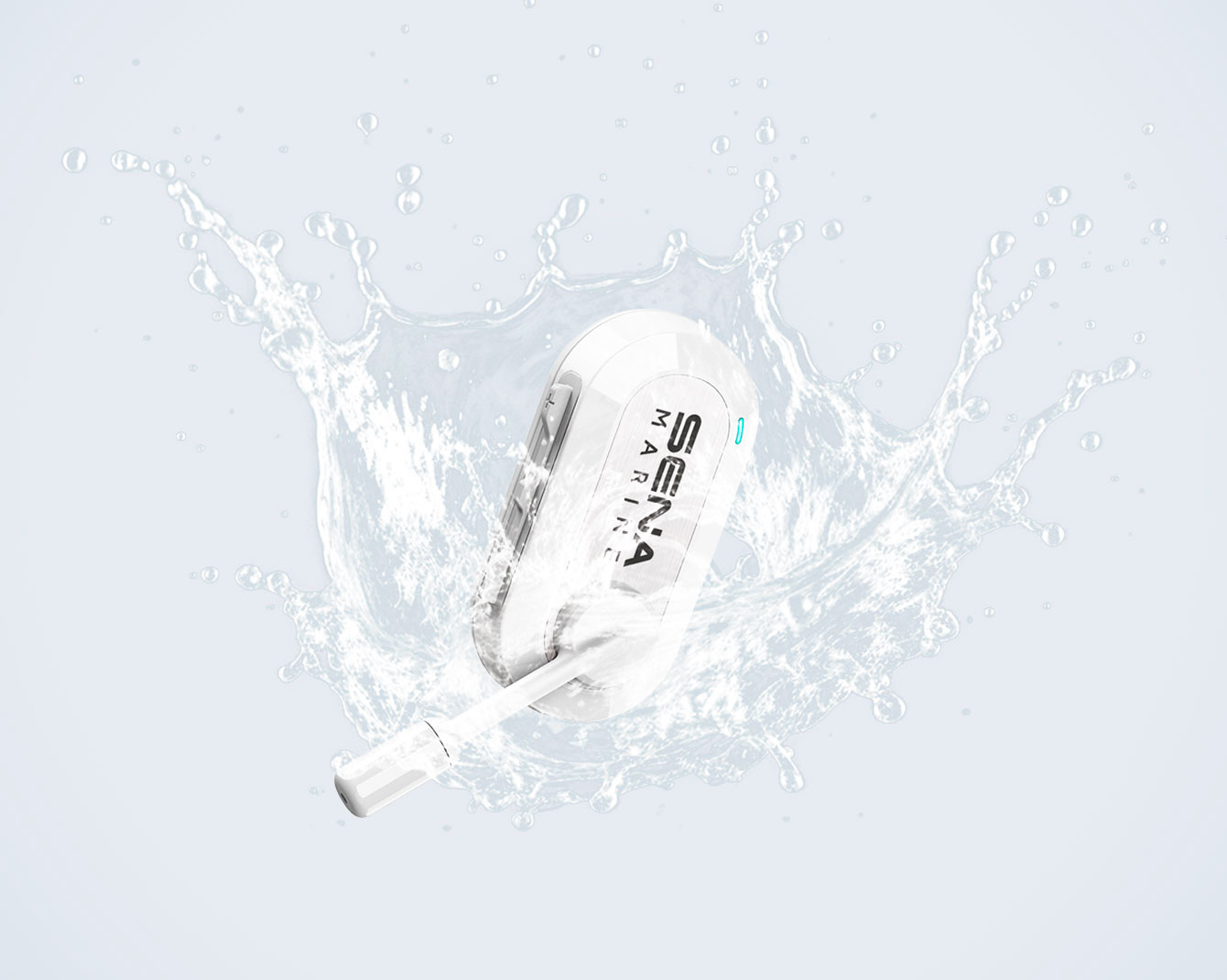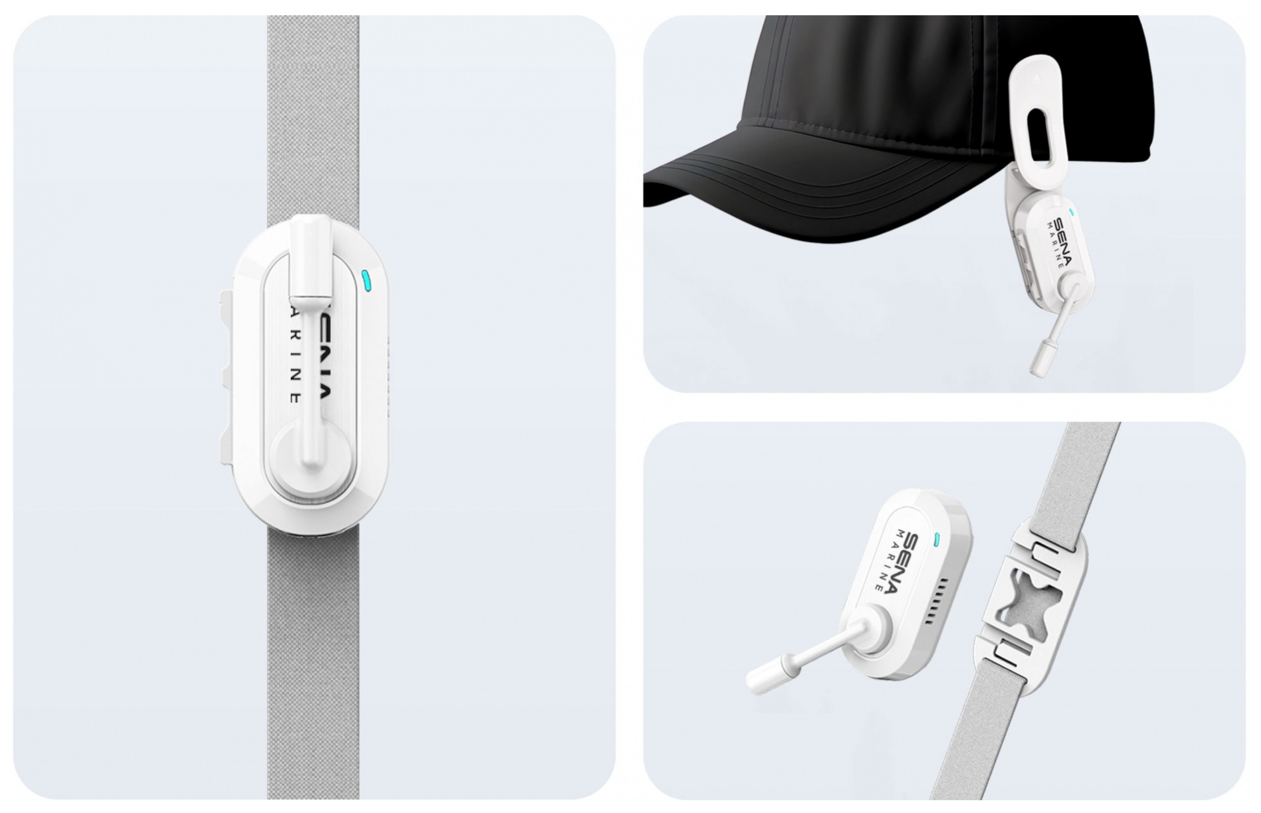 IPX5の防水性能を備え、キャップや海上用ヘルメットのストラップに簡単に取り付けて使用できる、片耳タイプの軽量ヘッドセット。
